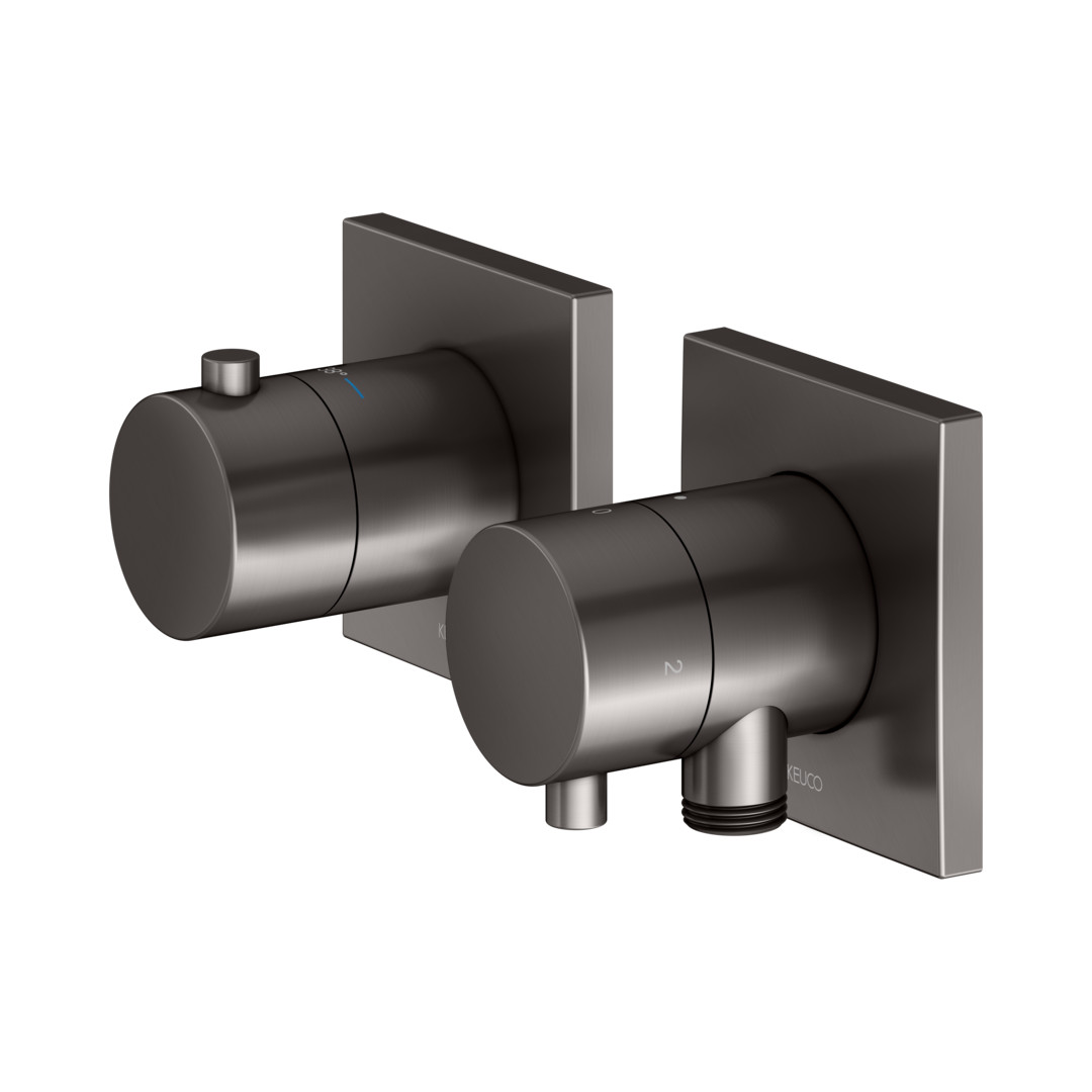 KEUCO Fertigmontageset Edition 11 UP-Thermostatarmatur, mit Schlauchanschluss, Brausehalter, für 2 Verbraucher, titanschwarz gebürstet