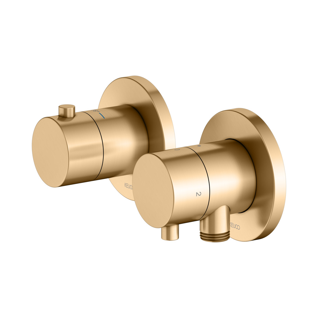 KEUCO Fertigmontageset Edition 400 UP-Thermostatarmatur, mit Schlauchanschluss, Brausehalter, für 2 Verbraucher, messing gebürstet