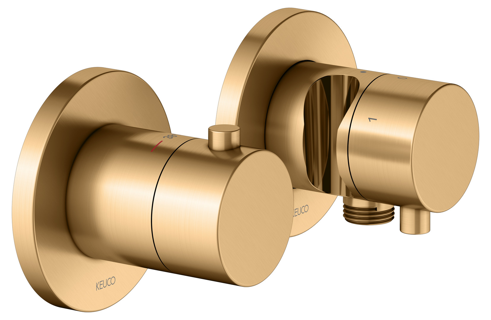 KEUCO Fertigmontageset Edition 400 UP-Thermostatarmatur, Schlauchanschluss, Brausehalter, für 3 Verbrauch, messing gebürstet