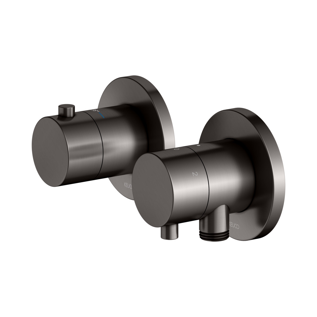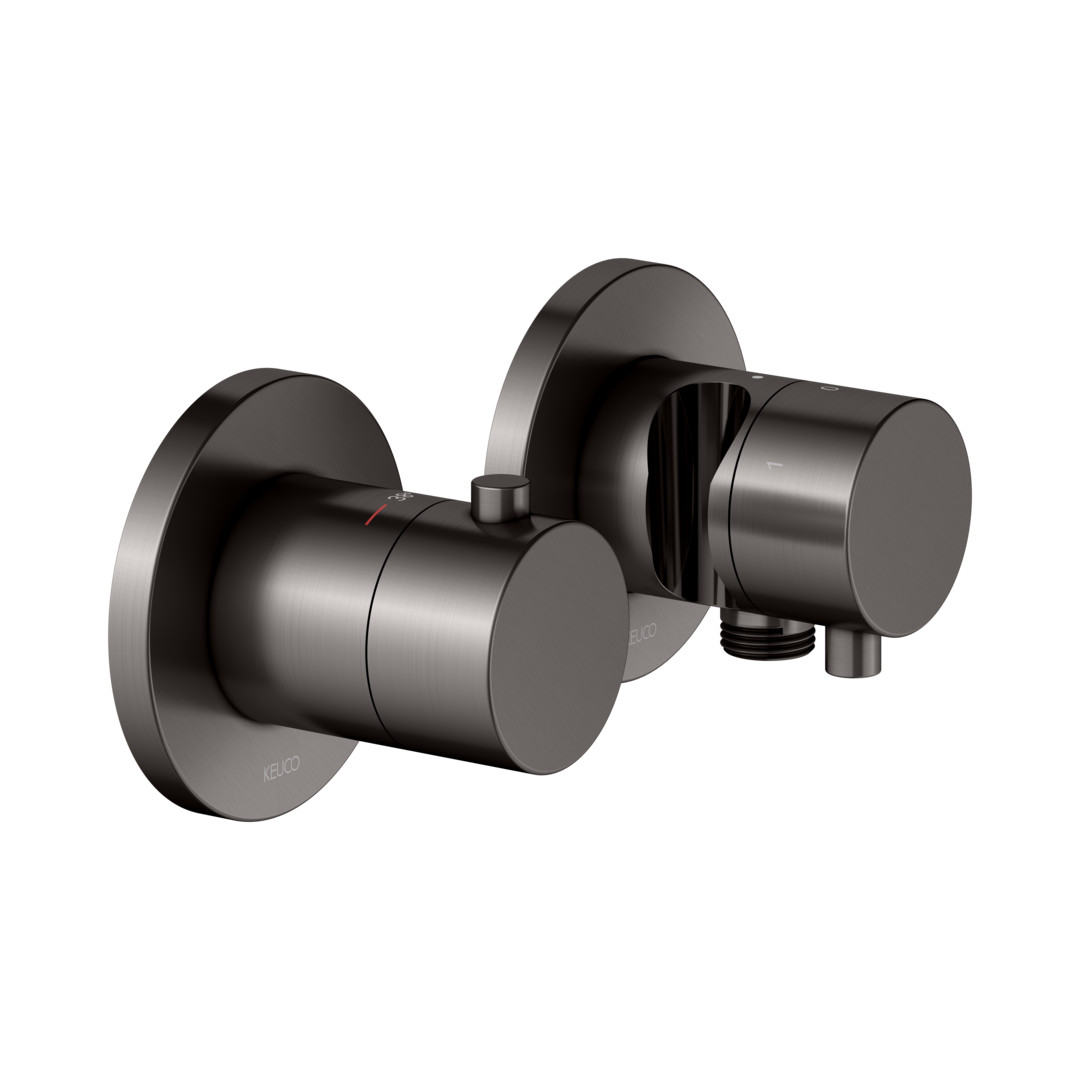 KEUCO Fertigmontageset Edition 400 UP-Thermostatarmatur, Schlauchanschluss, Brausehalter, für 3 Verbrauch, titanschwarz gebürstet