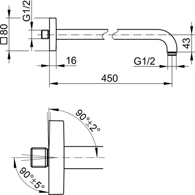 KEUCO Brausearm Ausladung 450 mm, titanschwarz gebürstet, Rosette eckig, Wandmontage