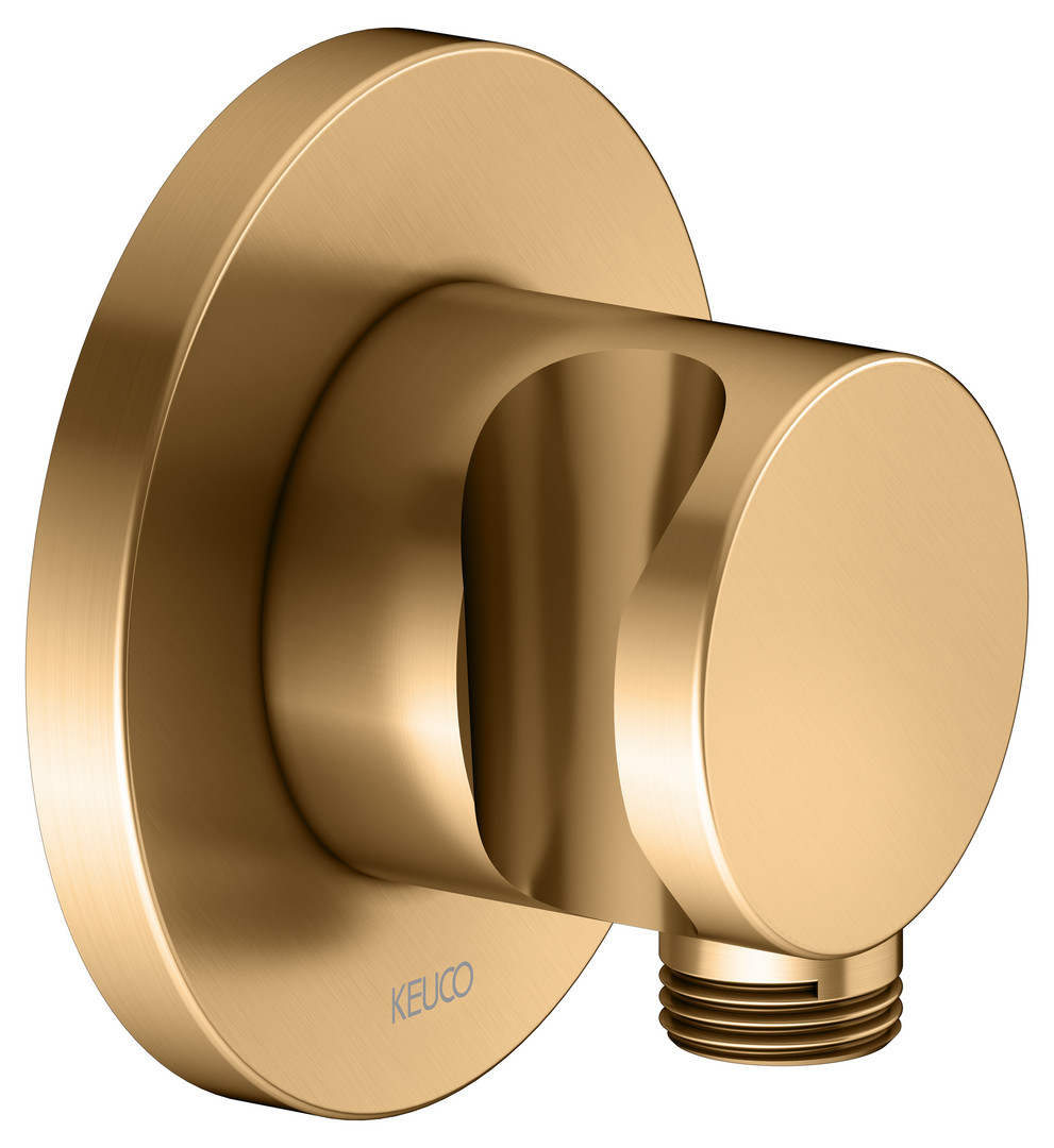 KEUCO Schlauchanschluss Rosette rund, mit Brausehalter, messing gebürstet
