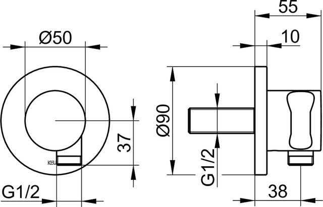 KEUCO Schlauchanschluss Rosette rund, mit Brausehalter, verchromt W341193