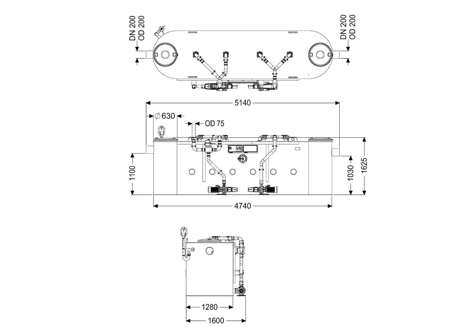 | Nenndurchmesser alle Anschlüsse | DN 200 |