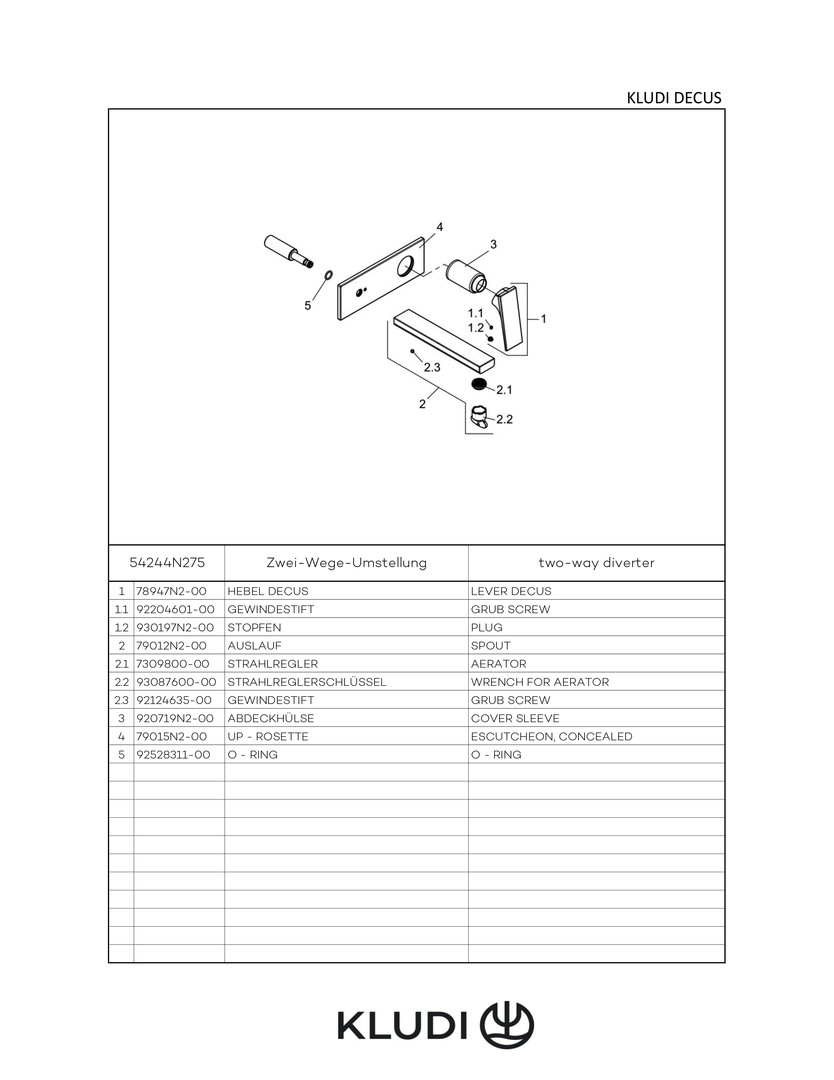 KLUDI DECUS Fertigmontageset für Unterputz-Waschtisch-2-Loch-Wand-Einhebelmischer, chrom W324055