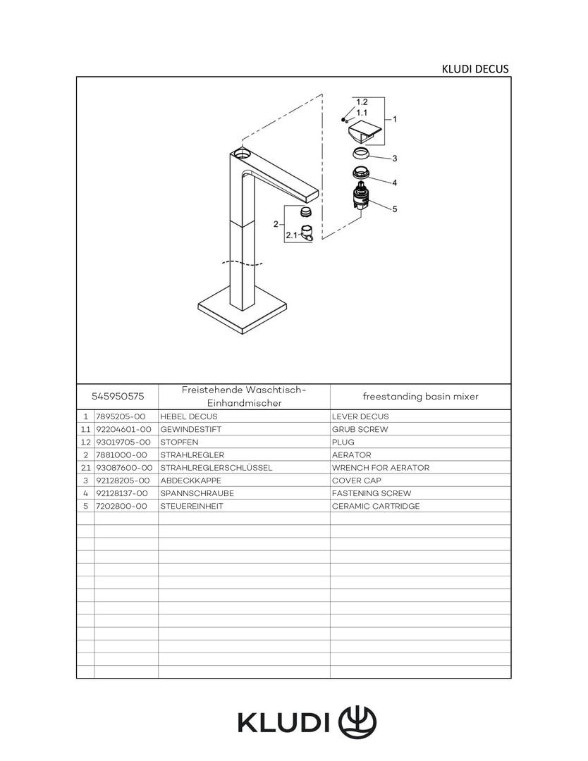 KLUDI DECUS Waschtisch-Einhebelmischer Standmontage für freistehende Waschtisch, chrom