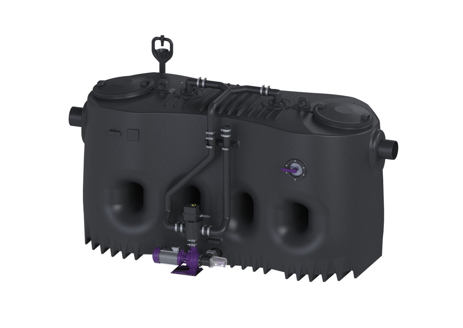 aus PE, Einbau in frostgeschützten Räumen, mit programmgesteuerter Entsorgungs- und Reinigungseinrichtung, Schredder-Mix-System, Schaltgerät, Schauglas, Fülleinrichtung, Pumpe und Trinkwasserspülung, die Fließrichtung kann durch Austauschen des Zu- und Ablaufstutzens geändert werden, Pumpenleistung 3 kW, Kabellänge für Anbauteile 5 m, Anlage komplett montiert, Zubehör Probeentnahmeeinrichtung, Hebeanlagen, Fernbedienung
