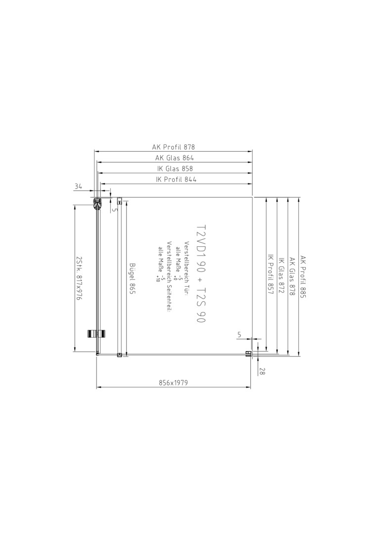 Palme Pendeltür zu Seitenteil Top Drive Pflegedusche 89,5 x 200 cm, rechts, AK ESG nano, alusilber, ohne Fixteil