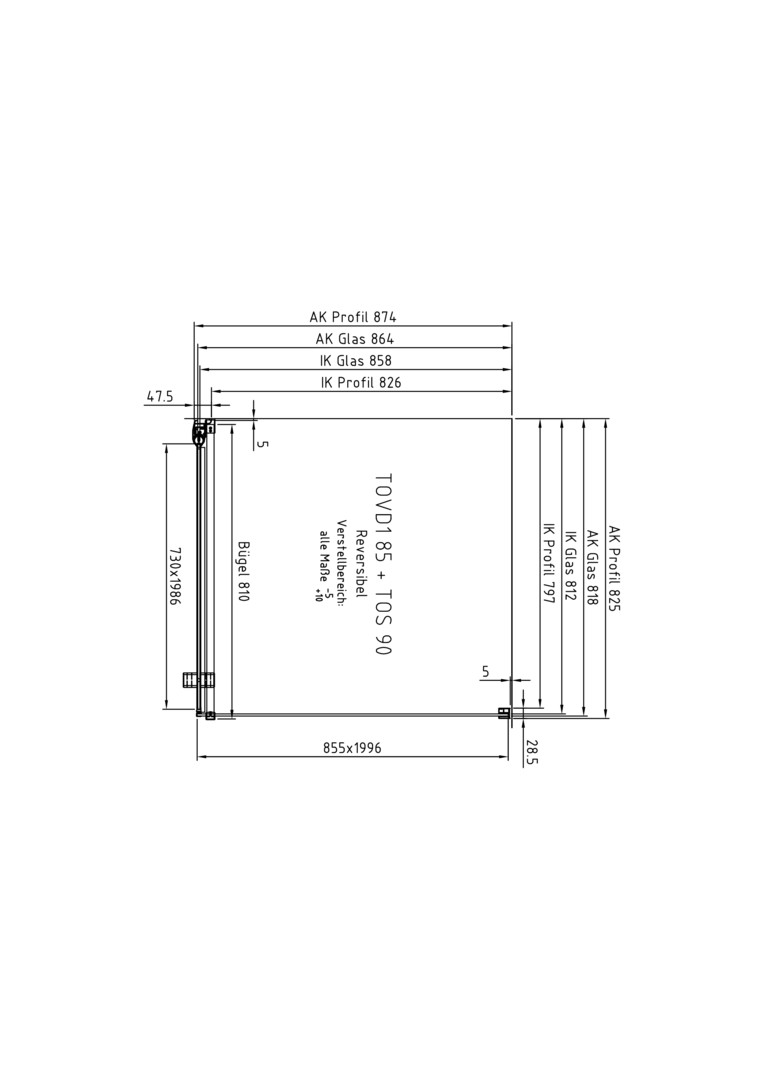 Palme Pendeltür zu Seitenteil Top Drive R 83,5 x 200 cm, AK ESG nano, cenit-chrom, 1-teilig, reversibel