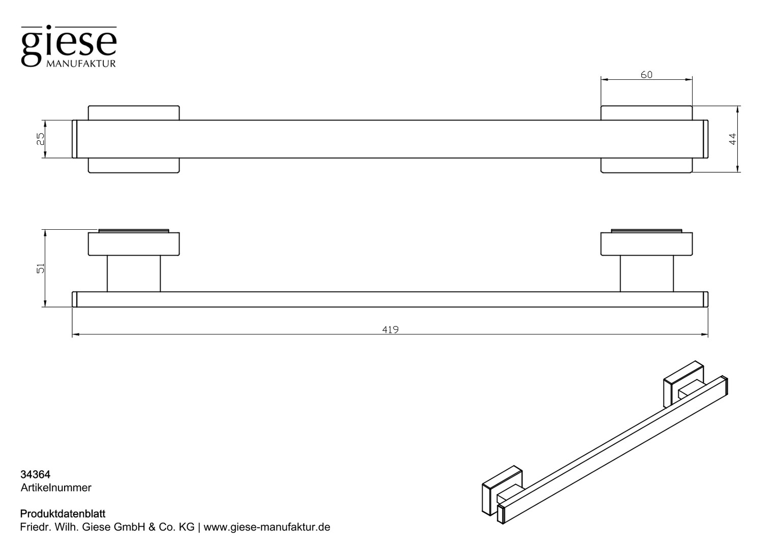 Giese Handtuchhalter mit Magnet, für Heizkörper, 419x51x25mm, verchromt W359479