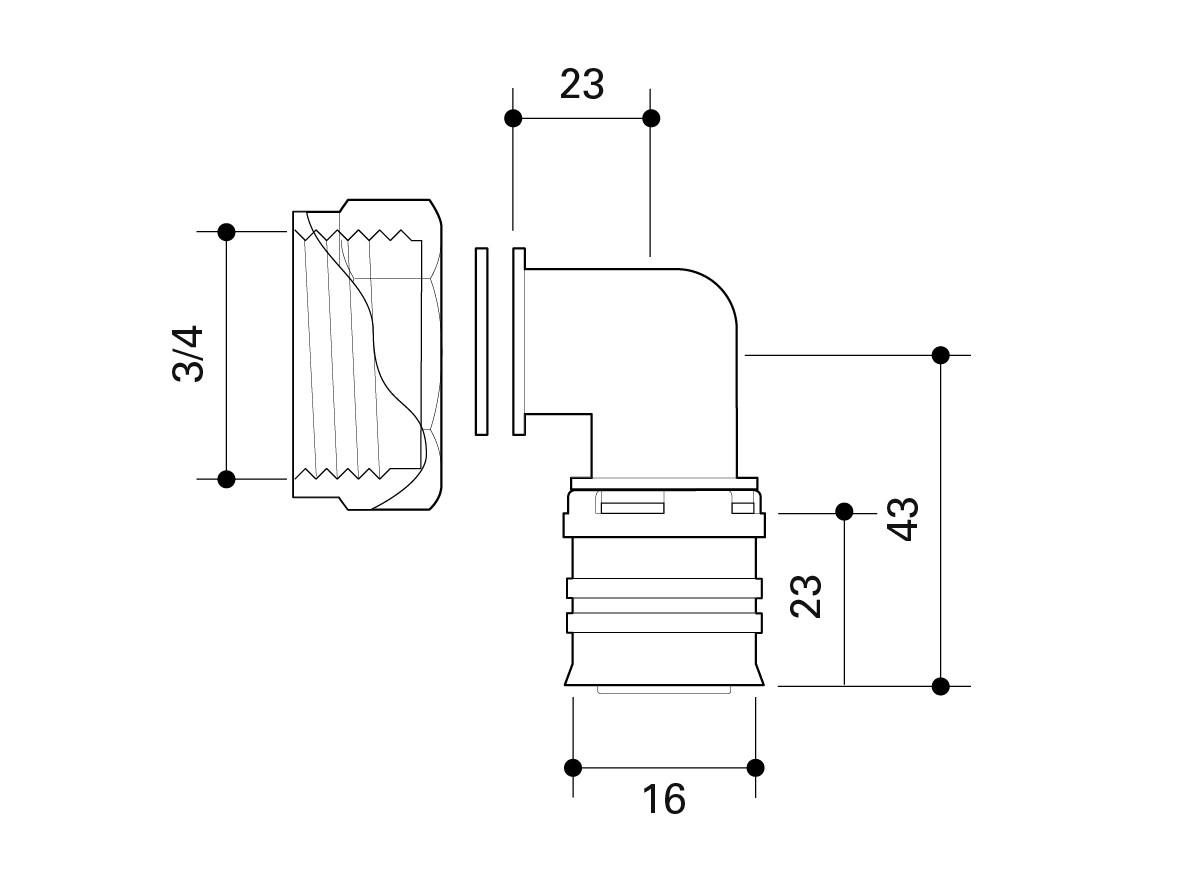 Fränkische Winkel-Übergangsverschraubung alpex 16 mm x G 3/4, flachdichtend, Siliziumbronze