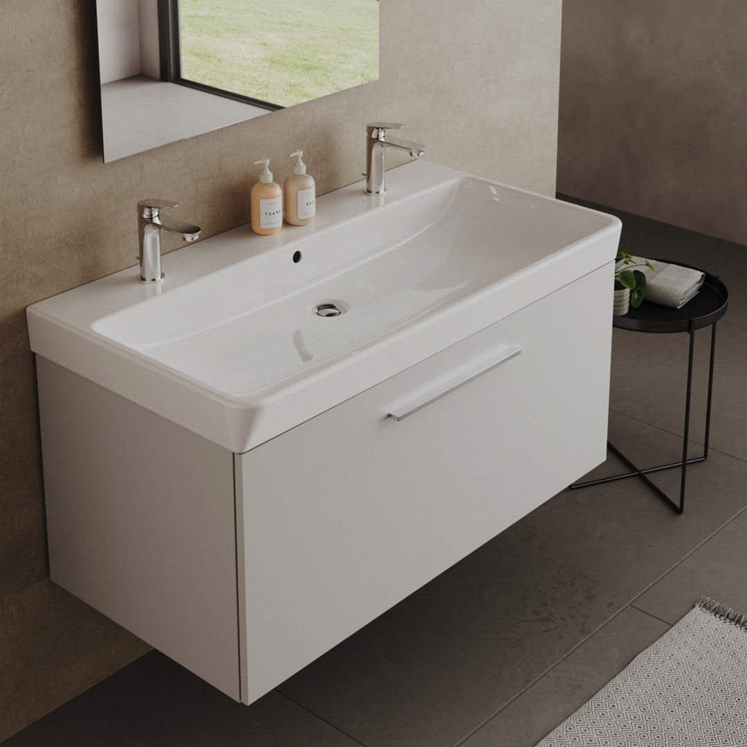 Ideal-Standard Doppelwaschtisch i.life B 102x54x16cm, je 1 Hahnloch, mit Überlauf, weiß Ideal Plus W913479