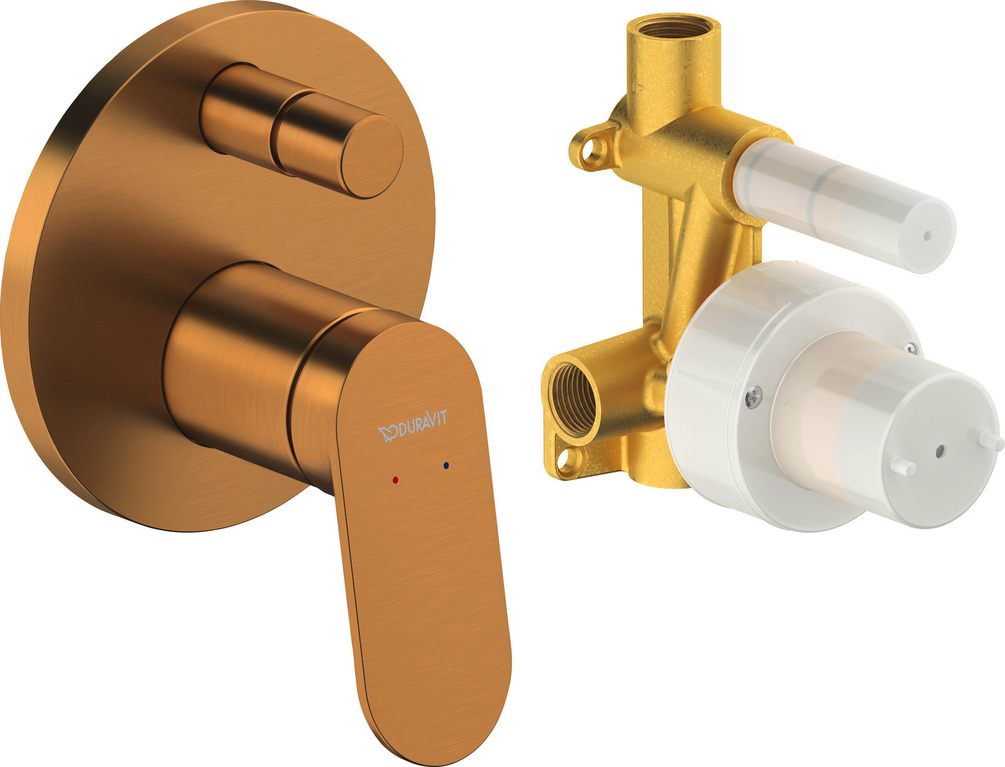 Duravit Fertigmontageset Wave UP-Wannen-Einhebelmischer, Umsteller mit automatischer Rückstellung, Bronze gebürstet