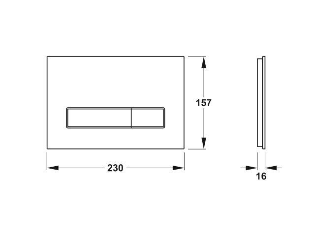 zur mechanischen WC-Spülauslösung bei MEPA UP-Spülkästen, Glas bzw. Edelstahl/Kunststoff, 230 x 157 x 11 mm, Betätigung von vorne, für aufgesetzte oder fliesenbündige Montage, EasyConnect-System für werkzeuglose Montage der Betätigungsplatte, bestehend aus Befestigungsrahmen, 2x Drückerstangen, 2x Distanzbolzen und Befestigungsmaterial
