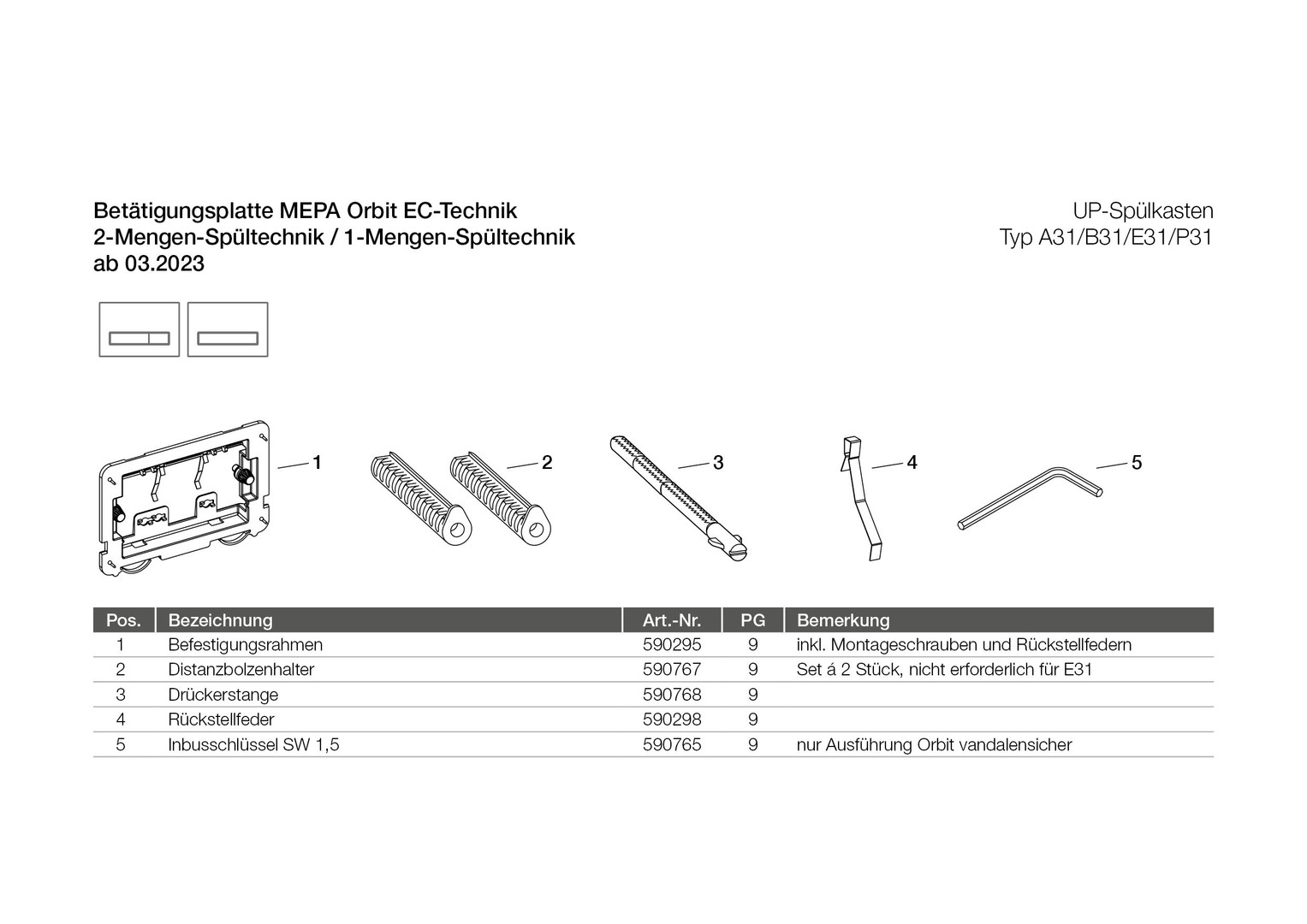 MEPA Betätigungsplatte MEPAorbit Steel, 2-Mengen, für teileingelassene Montage W354507