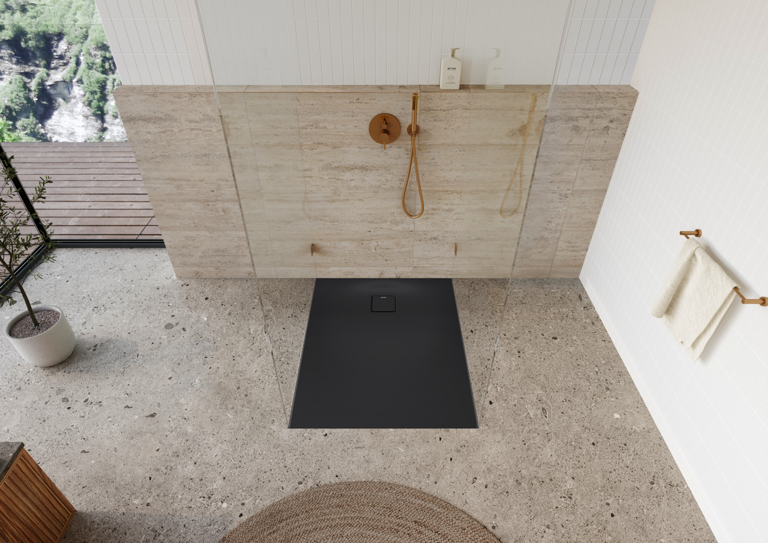 mit emailliertem Ablaufdeckel mit CLICK'N CLEAN Öffnungsmechanismus und Haarfangfunktion, mit vollflächiger Rutschhemmung INVISIBLE GRIP, an vier Seiten schwellenlos, ermöglicht barrierefreien Einstieg