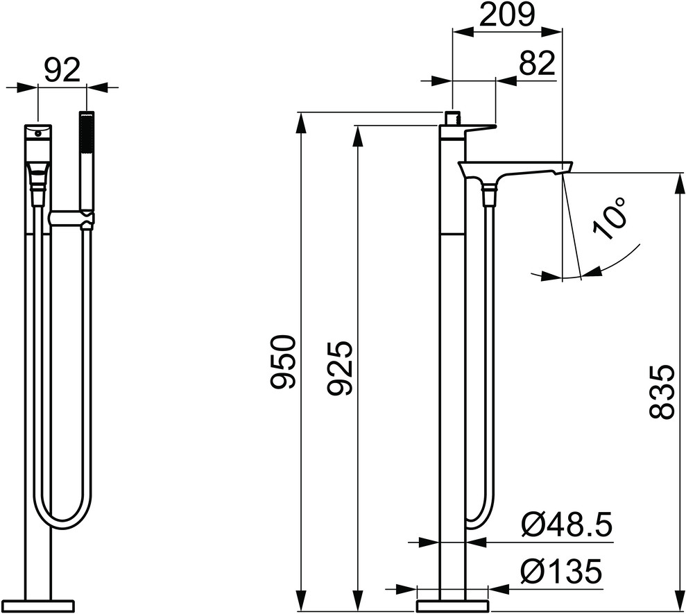 HANSA Wannen-Einhebelmischer HANSAGENESIS bodenstehend, mit Handbrause, Ausladung 209mm, chrom W932765