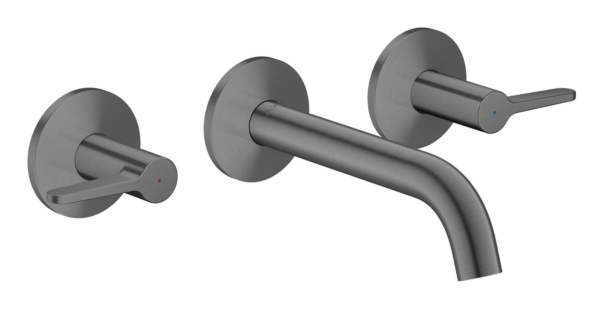 hansgrohe 3-Loch-Waschtisch-Armatur Axor One UP, Ausladung 160mm, Wandmontage mit Rosetten, mit Hebelgriff, brushed black chrome