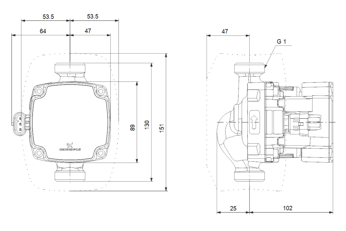 Grundfos Hocheffizienz-Umwälzpumpe Alpha1 GO 25-60 130, DN25, 130 mm, geregelt W942239
