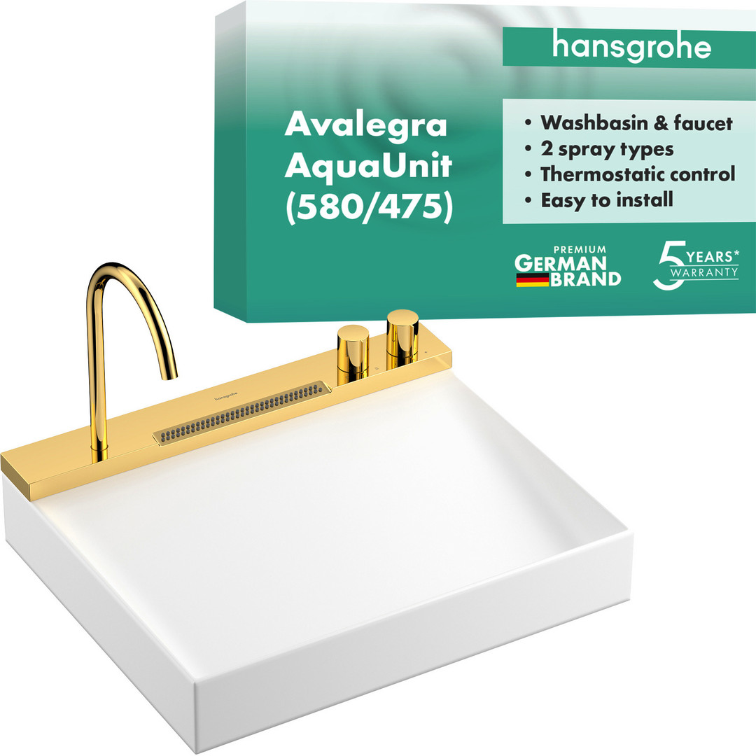 hansgrohe Aufsatz-Waschtisch Set Avalegra AquaUnit 580x475mm, mit Waschtischarmatur, ohne Ablage, polished gold optic