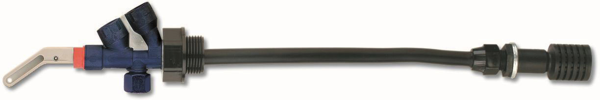 für Einzeltanks bis 1.000 l, Erdtanks, Batteriebehälter nach DIN 6620 und kellergeschweißte Tanks nach DIN 6625, mit Schnellschlussventil und Kunststoff- Einschraubkörper zur elektrischen Trennung von Ölleitung und Tank, Saug- und Rücklaufanschluss G 3/8, Anschlussgewinde G 1, G 11/2 und G 2, Schlauchlänge 2,1 m