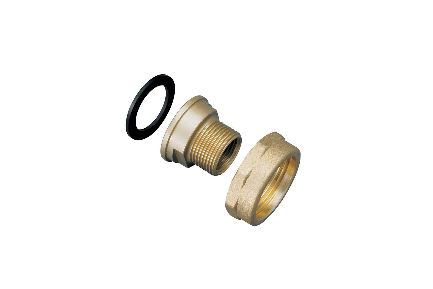 2x Fitting, 2x Überwurfmutter, 2x Flachdichtung