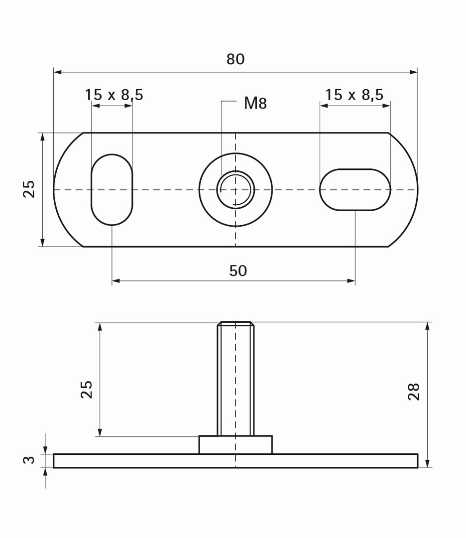 Walraven Grundplatte 672 AG M 8 x 28 x 25 mm, Stahl, elektrolytisch verzinkt