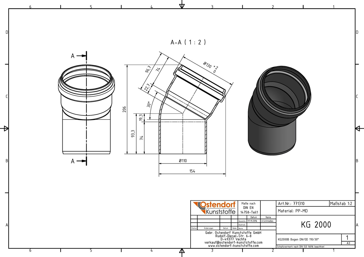 Ostendorf KG2000 Bogen B DN/OD 110, 30Grad