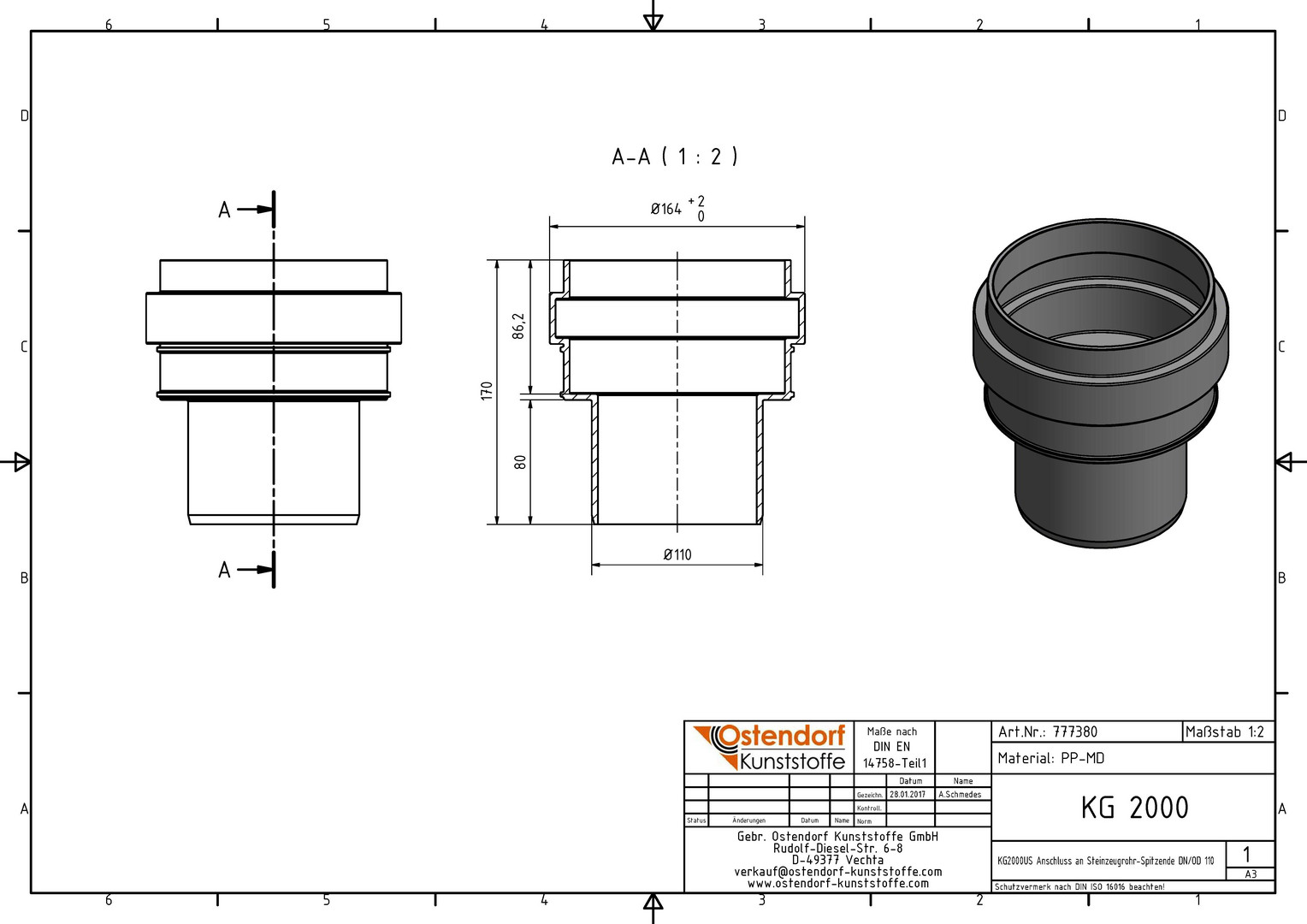 Ostendorf KG2000 Anschluss-Stück US DN/OD 160, an Steinzeugrohr-Spitzende komplett 241275