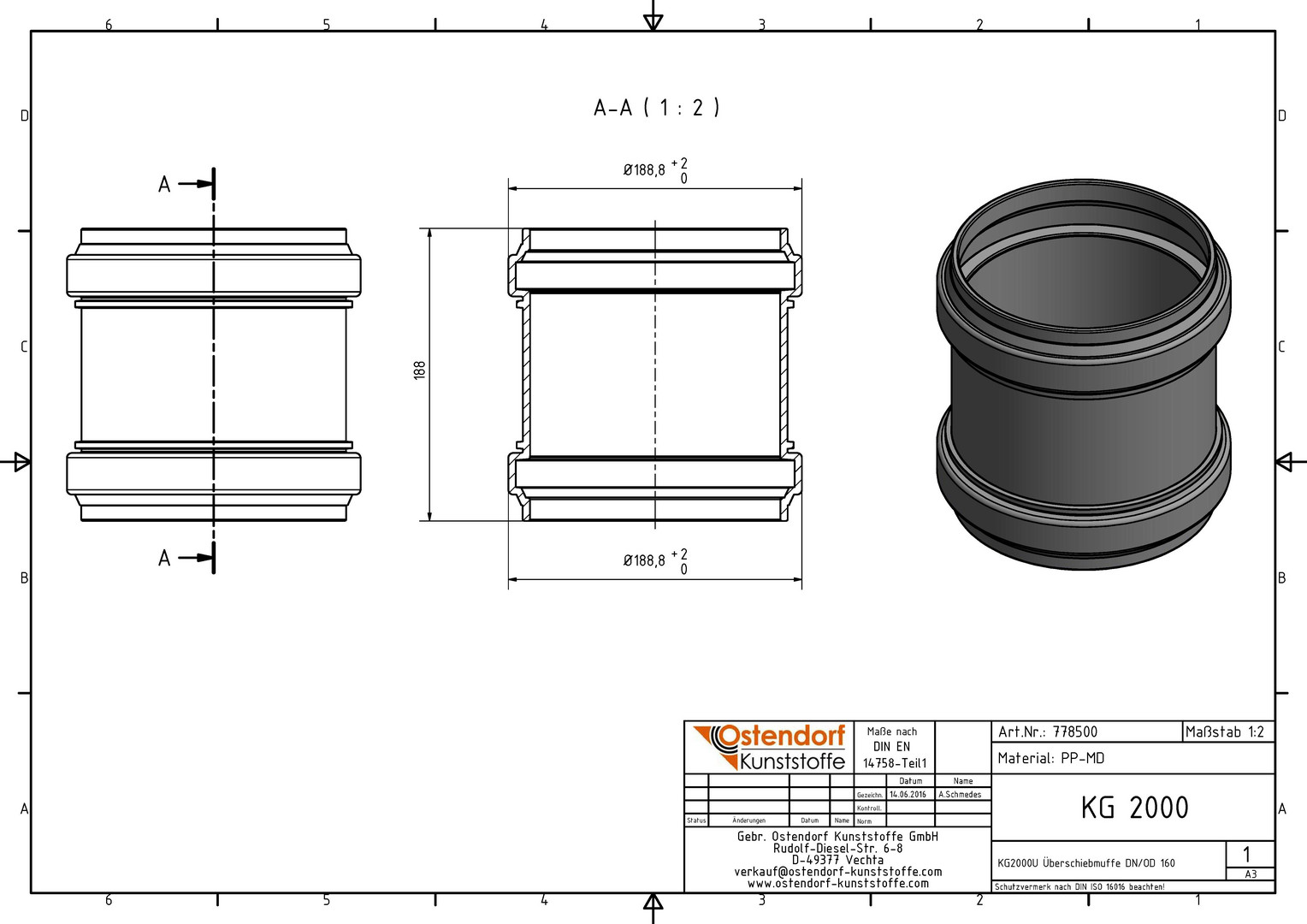 Ostendorf KG2000 Überschiebmuffe U DN/OD 160