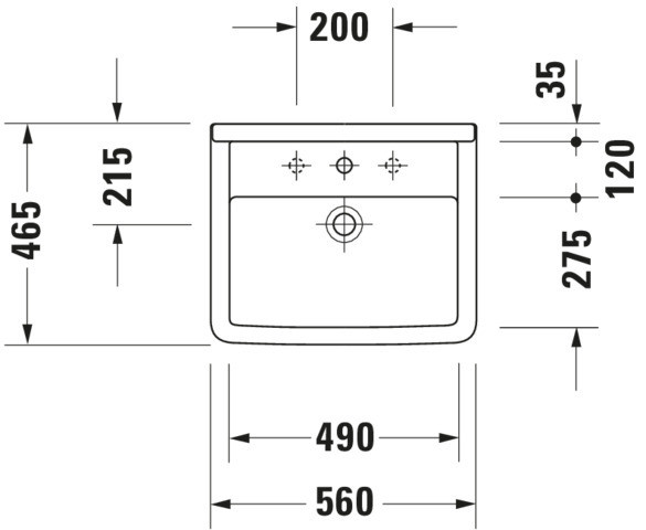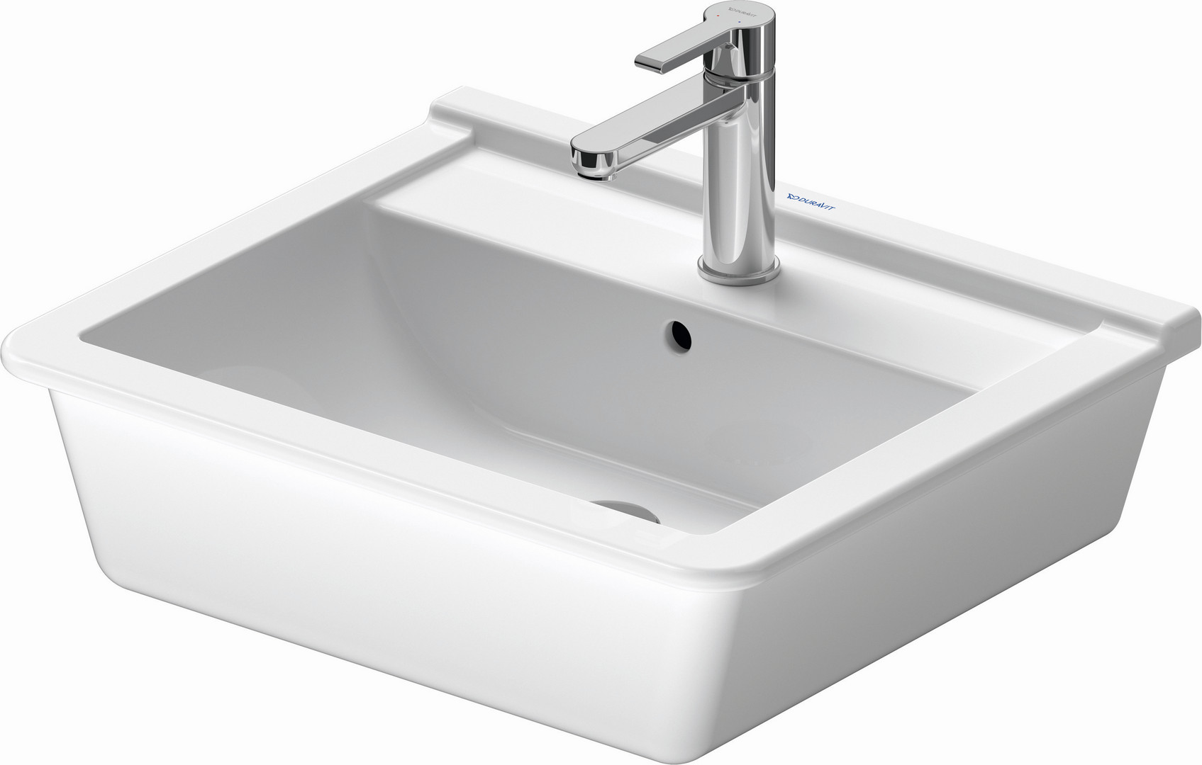 Duravit Einbau-Waschtisch Starck 3 56x46,5cm, Einbau von oben, mit Hahnloch, Überlauf, Hahnlochbank, weiß