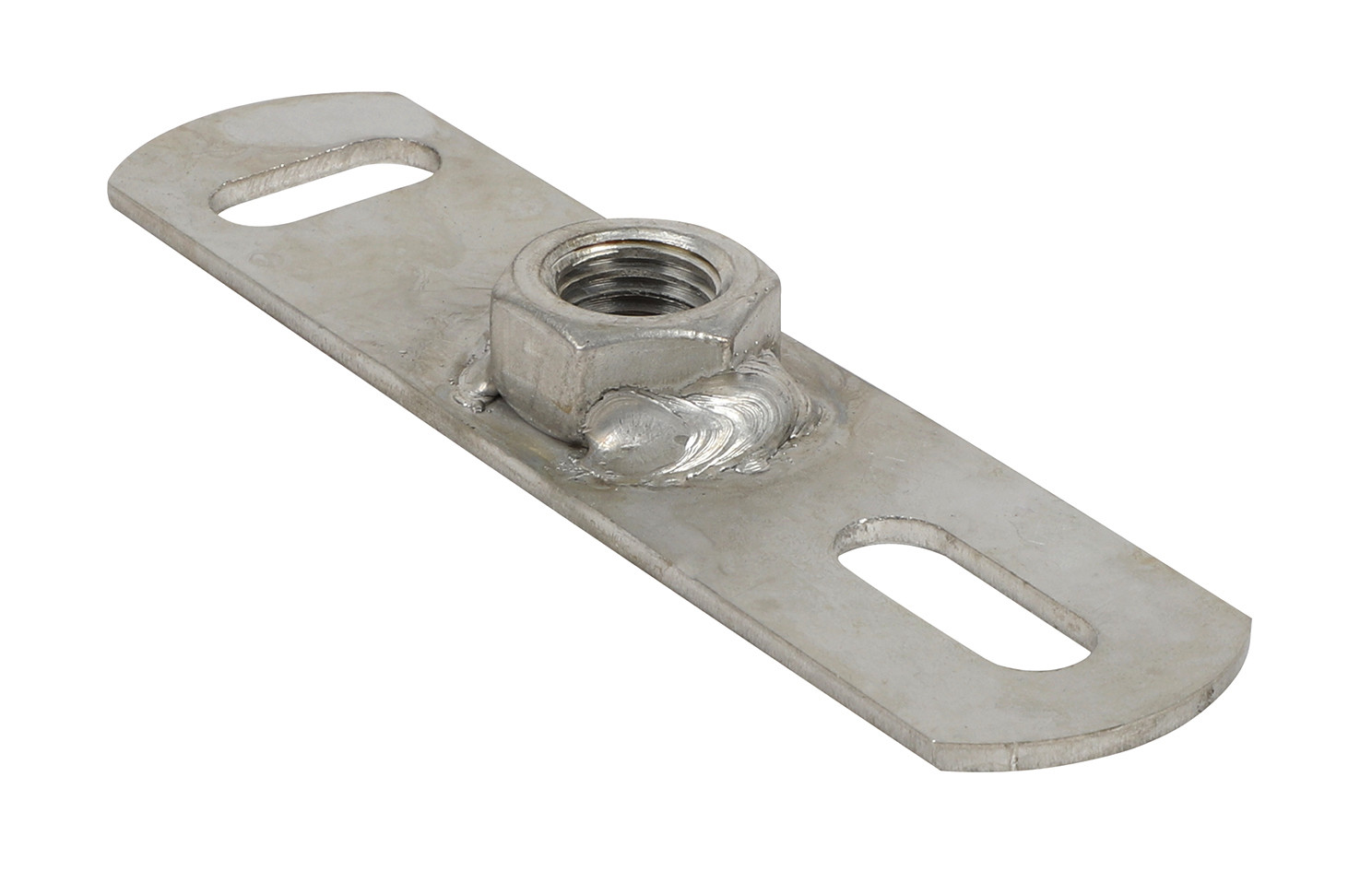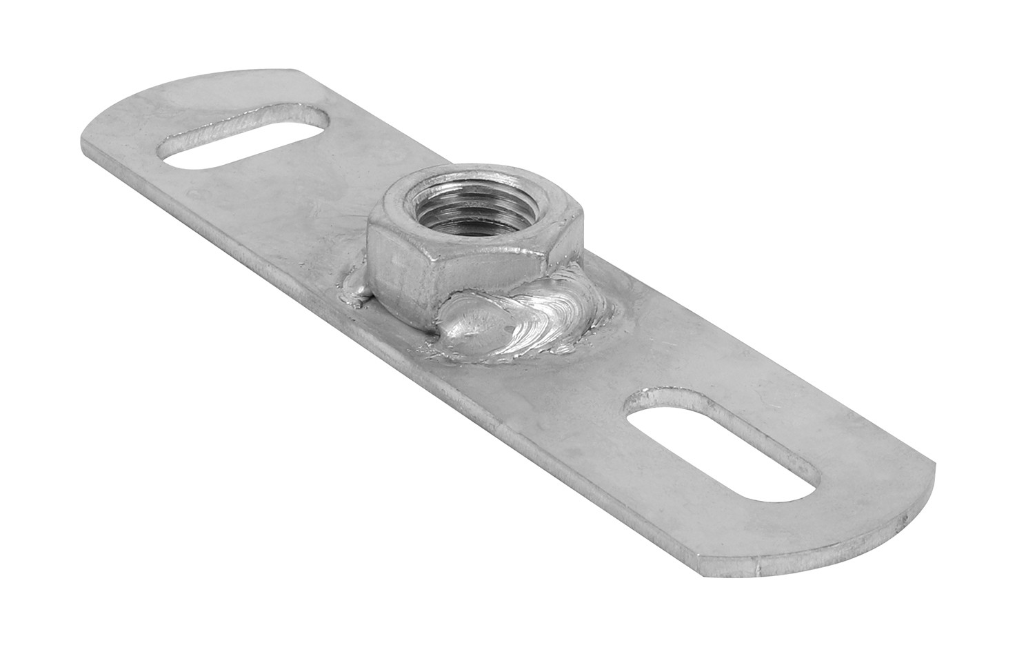 Befestigungslöcher als Langlöcher um 90° zueinander ausgestanzt, 4-fach angeschweißte Anschlussmutter