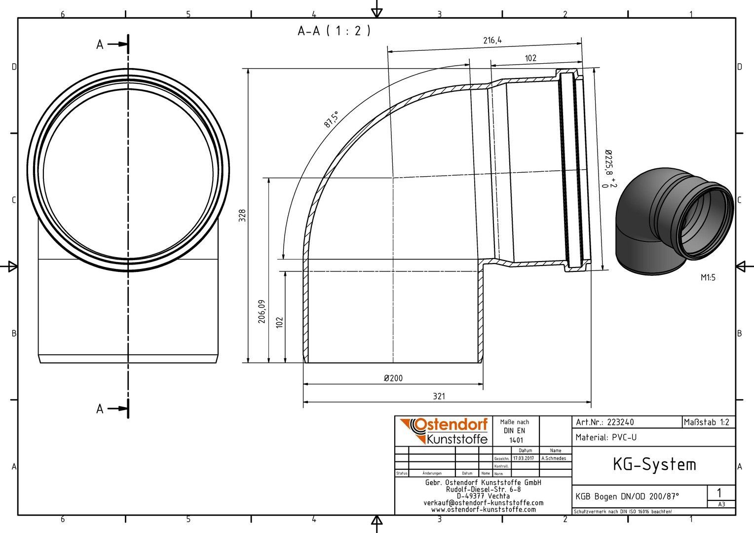 Ostendorf KG Bogen B DN/OD 200, 87,5°