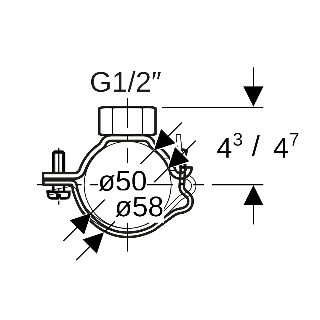 Geberit Rohrschelle DN 50, mit Gewindemuffe G 1/2, verstellbar, verzinkt W894259