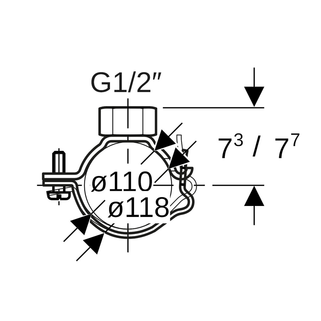 Geberit Rohrschelle DN 70, mit Gewindemuffe G 1/2, verstellbar, verzinkt W894387