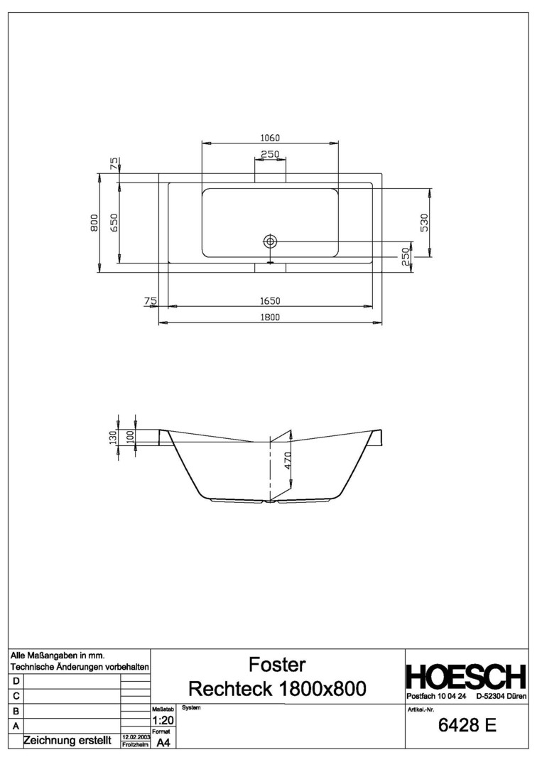 Hoesch Badewanne Foster weiß, 180 x 80 cm, 190 l