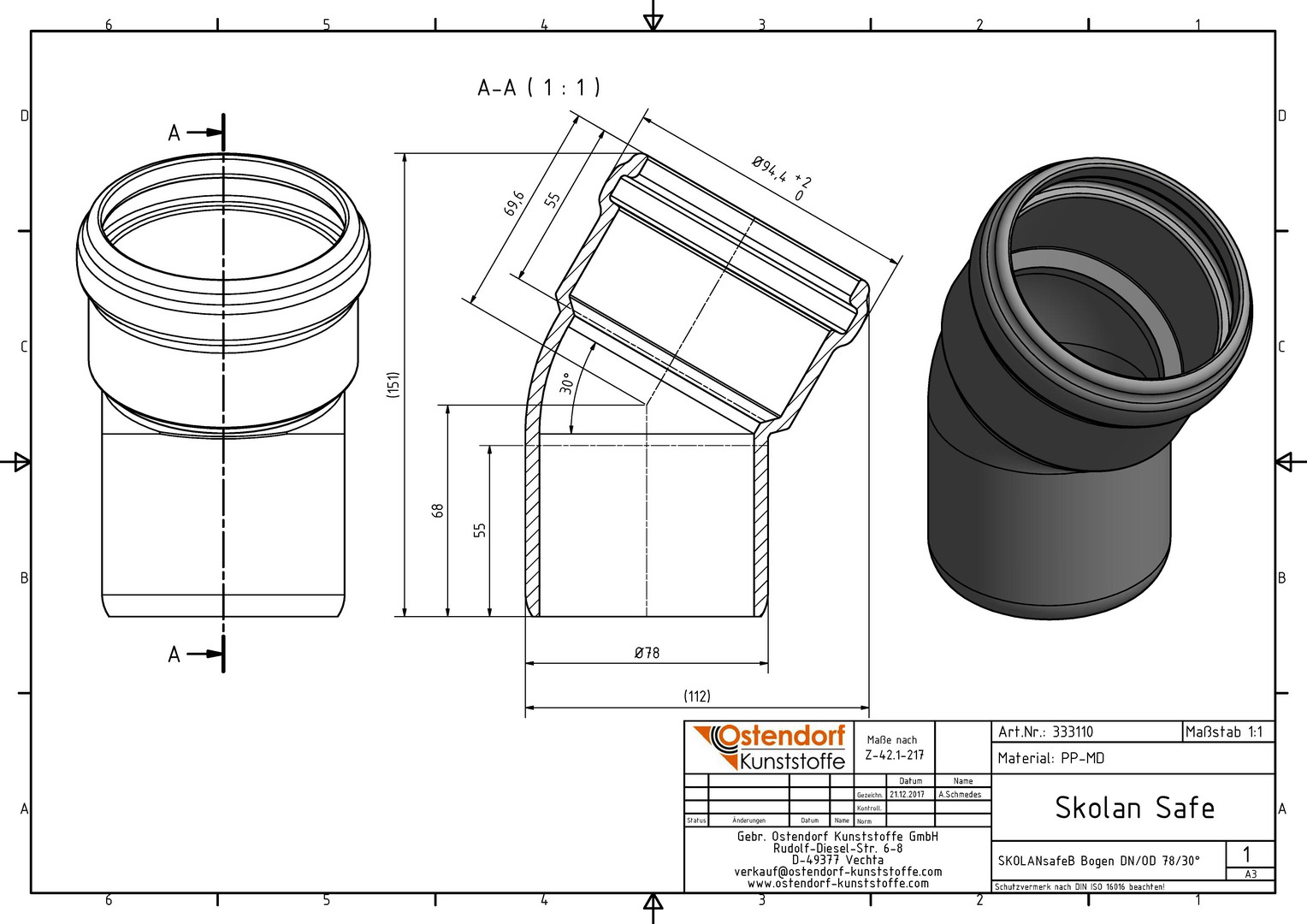 Ostendorf SKOLANsafe Bogen B DN/OD 78, 30°