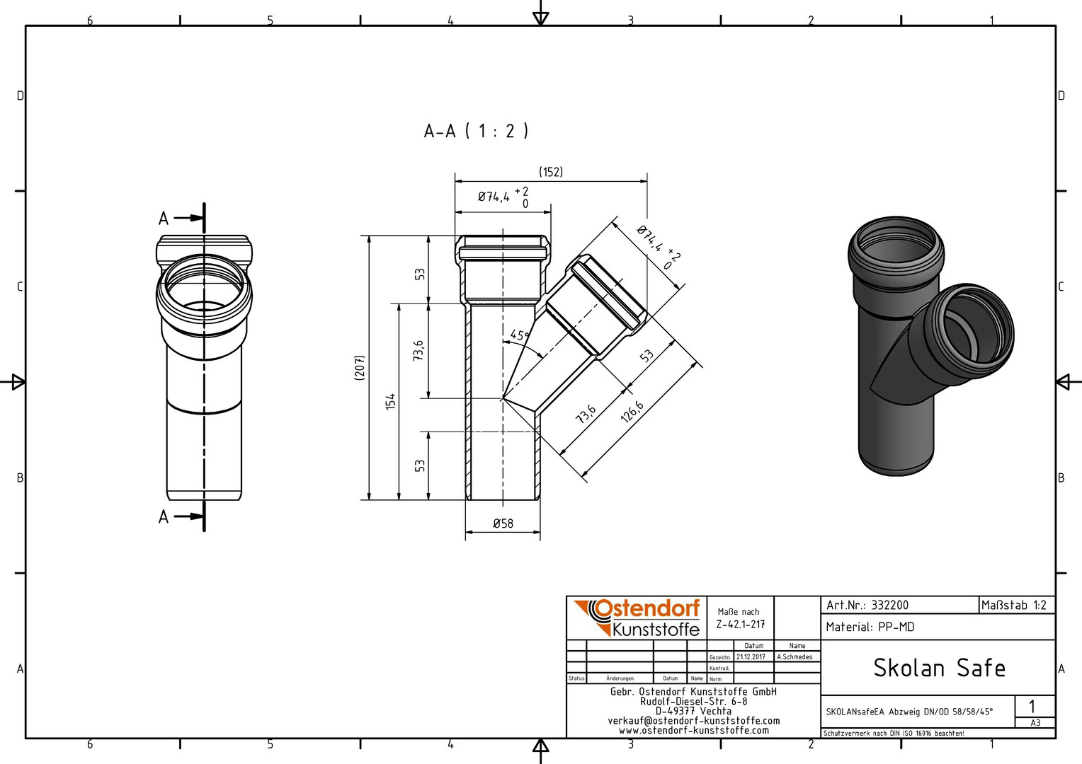 Ostendorf SKOLANsafe Abzweig EA DN/OD 78/58, 45Grad 241277