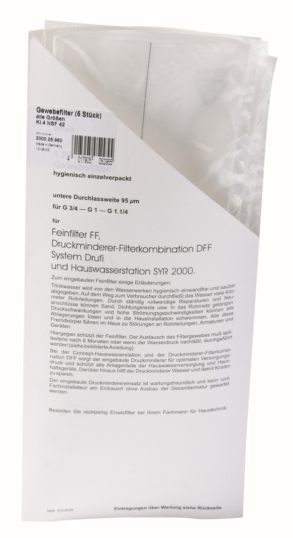 für Kerzenfilter, 5x in einer Vorratstasche, Einmalhandschuhe, Filtergewebe aus Nylon