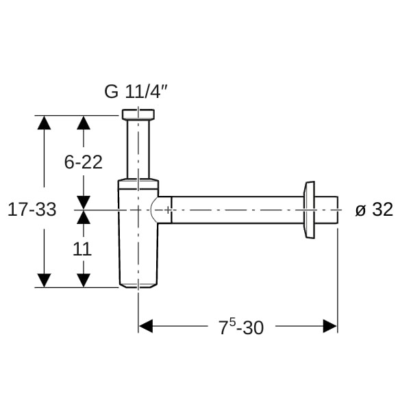 Geberit Tauchrohrgeruchsverschluss Abgang horizontal, für Waschbecken, G 1 1/4 x 32 mm, hochglanz-verchromt W346291