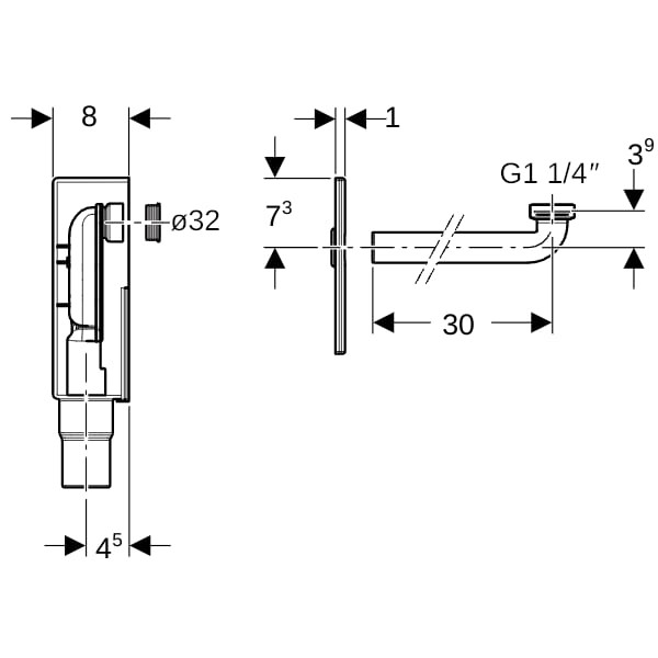 G 1 1/4, für Gesundheitseinrichtungen, für verdeckten Einbau, für Massivbau und barrierefreies Bauen geeignet, zur UP-Montage, güteüberwacht nach EN 274-3, UP-Geruchsverschluss bei Fertigmontage +/-3 cm höhenverstellbar, bestehend aus Anschlussbogen Ø 32 mm, Abdeckplatte, Wandeinbaukasten, UP-Geruchsverschluss, Dichtungen, Bauschutz und Befestigungsmaterial