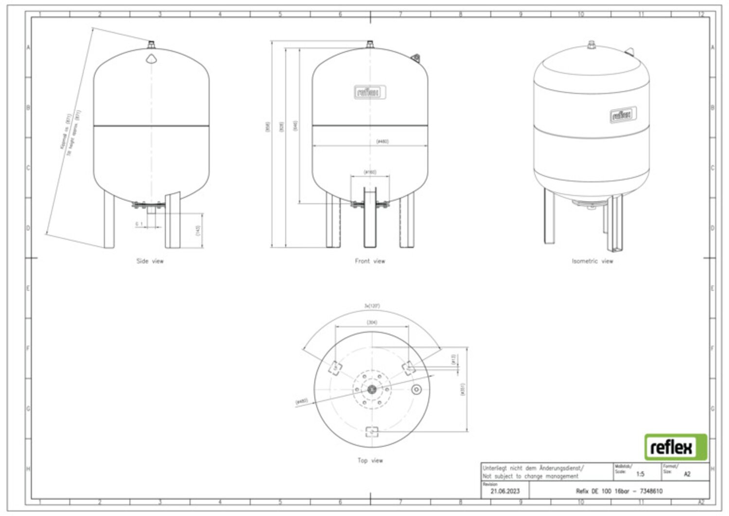 Reflex Membran-Druckausdehnungsgefäß Refix DE 100, 16 bar/70 °C, G 1