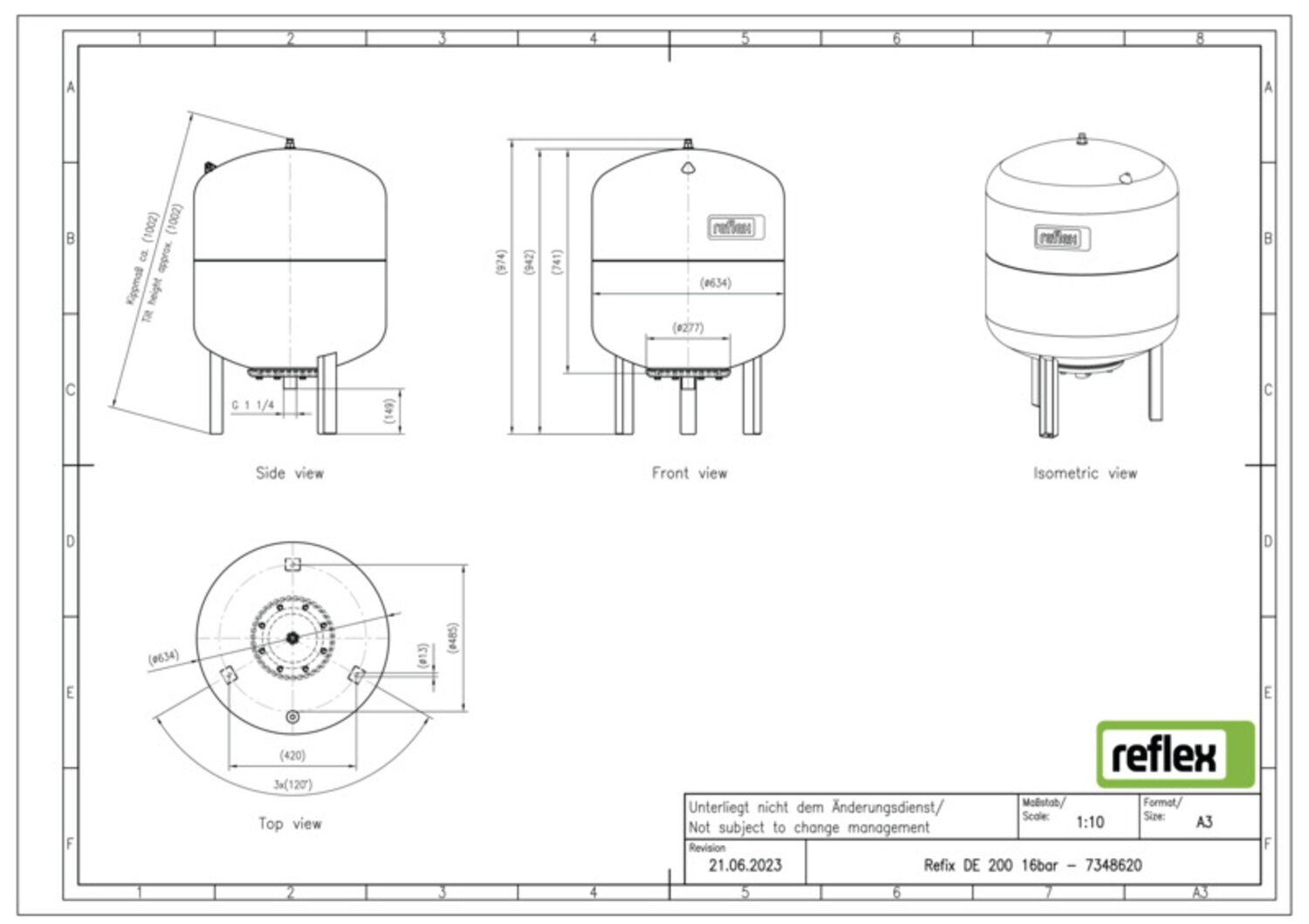 Reflex Membran-Druckausdehnungsgefäß Refix DE 200, 16 bar/70 °C, G 1 1/4